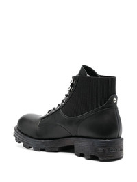 40mm leather combat boots black calf leather elasticated side panels round toe front lace-up fastening ankle-length branded insole low heel chunky rubber lug sole Imported Composition Outer: Elastane 100%, Calf Leather 100% Lining: Cotton 100%, Calf Leather 100% Sole: Rubber 100% SIZE & FIT Measurement HEEL 1.57 in(4 cm) HEIGHT 4.92 in(12.5 cm) Sole height 0.98 in(2.5 cm)