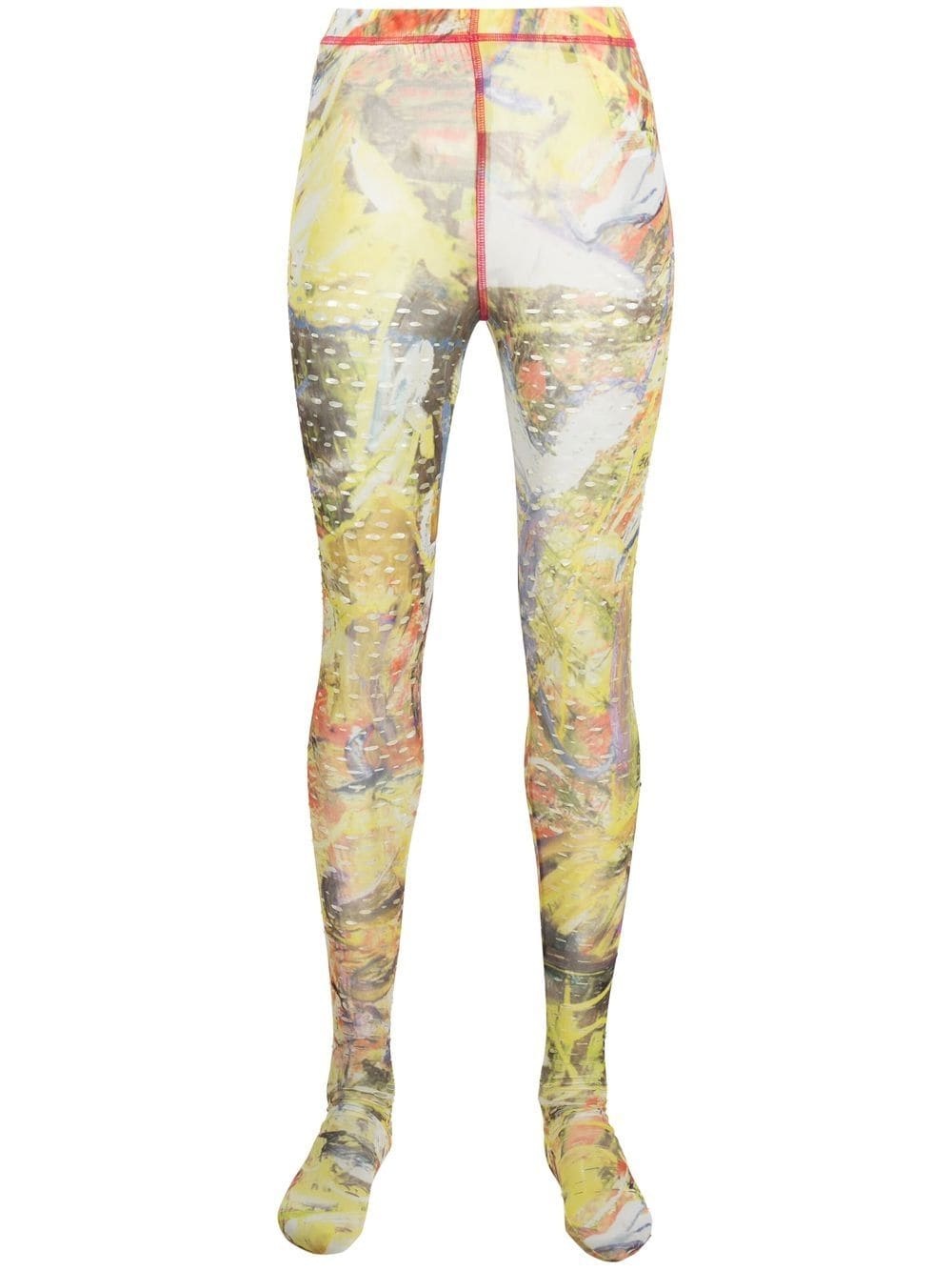 abstract-print footed leggings yellow/multicolour abstract pattern print cut-out detailing contrast stitching covers foot elasticated waistband high-waisted super-skinny cut Imported Composition Polyester 94%, Spandex/Elastane 6% SIZE & FIT Model measurements Height 5 ft 10 in(1.77 m) Bust/Chest 29.92 in(76 cm) Hips 34.25 in(87 cm) Waist 23.62 in(60 cm) FittingInformation This piece fits true to size. We recommend you get your regular size Cut for a close fit Made with a lightweight stretch fabric Measurement FRONT RISE 9.48 in(24.1 cm) INSIDE LEG 36.49 in(92.7 cm) BACK RISE 10 in(25.4 cm) HIPS 27.99 in(71.1 cm) Hem Width 7.99 in(20.3 cm) WAIST 27 in(68.6 cm) Washing instructions Hand Wash