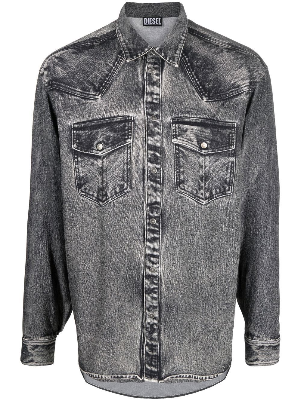 acid-wash long-sleeve shirt jet black acid wash classic collar front button fastening long sleeves buttoned cuffs two chest patch pockets curved hem Imported Composition Viscose 100% SIZE & FIT Model measurements Height 6 ft 2 in(1.87 m) Bust/Chest 38.18 in(97 cm) Hips 36.61 in(93 cm) Waist 29.13 in(74 cm) FittingInformation This piece fits true to size. We recommend you get your regular size Cut for a loose fit Made with a mid-weight non-stretch fabric Measurement CHEST 44.01 in(111.8 cm) SLEEVE LENGTH 24.01 in(61 cm) LENGTH 27 in(68.6 cm) WAIST 44.01 in(111.8 cm) Shoulder Width 20 in(50.8 cm) Washing instructions Dry Clean Only