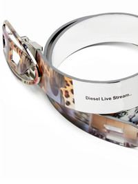 B-1DR REV belt Highlights - Silver-tone - Calf leather - Smooth grain - Metallic finish - Pin fastening - Oval d logo plaque - Photograph print - Punched holes - Curved tip - Adjustable fit Made in Italy Composition Calf Leather 100%
