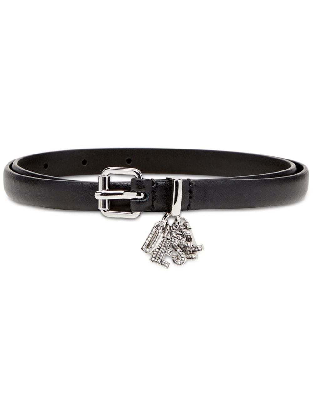 B-CHARM leather belt Highlights - Black - Calf leather - Logo charm - Buckle fastening - Rhinestone embellishment - Punched holes - Pointed tip - Adjustable fit Made in Italy Composition Calf Leather 100%