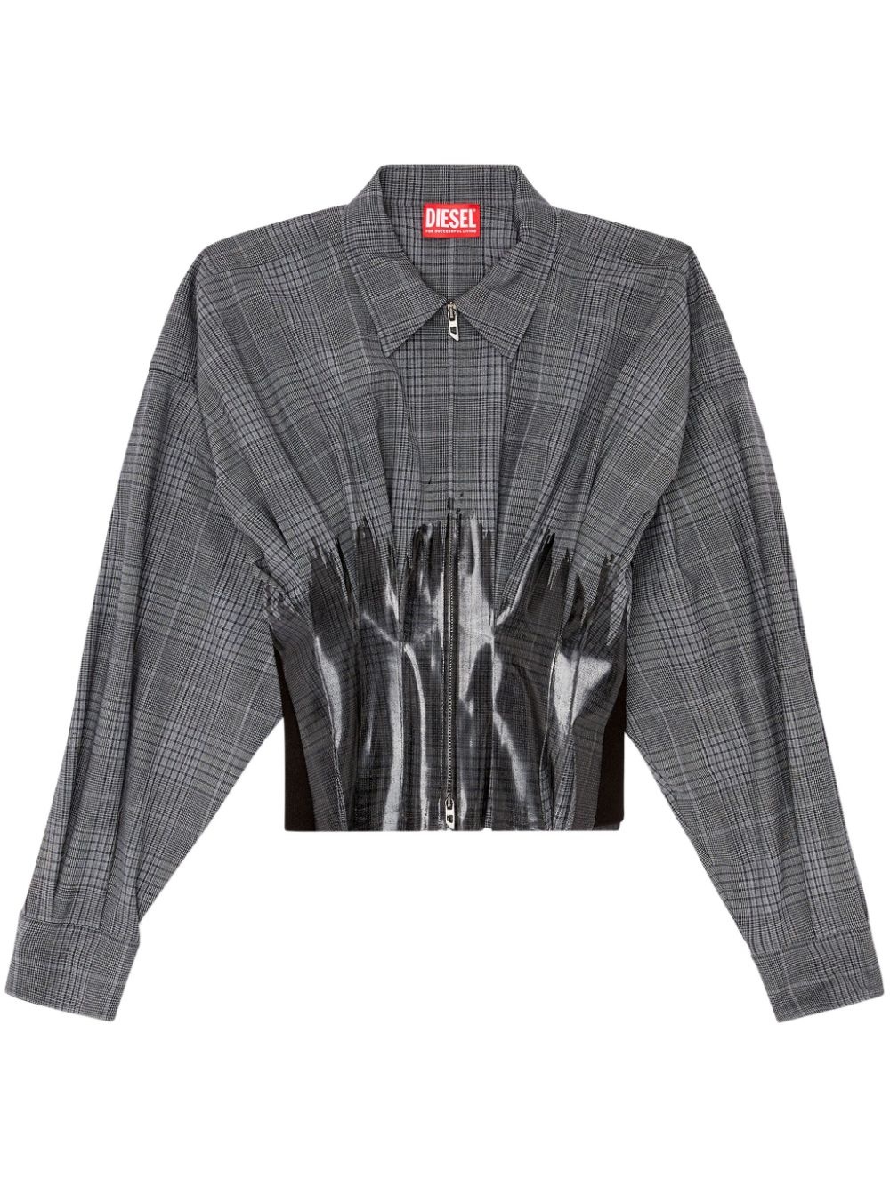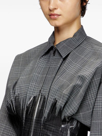 C-Anbu blouse Highlights - Charcoal grey - Check pattern - Front zip fastening - Fitted waistline - Ruched bodice - Drop shoulder - Gigot sleeves - Pleat detailing Made in Italy Composition Polyester 53%, Wool 43%, Elastane 4%