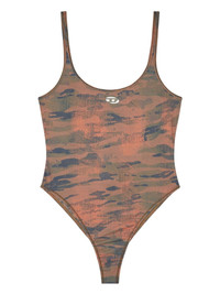 camouflage-print swimsuit Highlights - Earthy tones - Scoop neckline - Minimalist straps - High-cut leg - Iconic logo detail - Be mindful to try on swimwear over your own garments. Imported Composition Polyester 84%, Elastane 16%