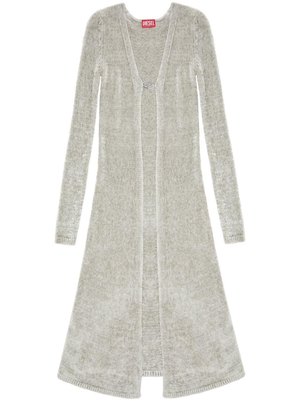 M-Carol logo-plaque cardigan Highlights - Grey - Speckle knit - Logo plaque - Open front - Long sleeves - Straight hem - Mid-calf length Imported Composition Rayon 72%, Nylon 28% SIZE & FIT Model measurements Height 5 ft 10 in(1.77 m) Bust/Chest 33.07 in(84 cm) Hips 37 in(94 cm) Waist 24.8 in(63 cm) FittingInformation Designed for a slim fit that sits just away from the body offering a close yet comfortable fit Made from a midweight non-stretch fabric, this piece offers minimal elasticity when worn This piece fits true to size – take your usual size Measurement SLEEVE LENGTH 28.5 in(72.4 cm) HIPS 27.99 in(71.1 cm) LENGTH 45 in(114.3 cm) WAIST 25.98 in(66 cm) BUST 30 in(76.2 cm) Washing instructions Hand Wash