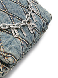Charm-D denim shoulder bag Made from faded blue cotton denim, Diesel's Charm-D shoulder bag taps into the brand's early 2000s-inspired take on accessories. Emblazoned with a silver-tone chain and crystal-embellished letter charms, it is finished with diamond quilting for a tactile look. Highlights - Light blue - Cotton - Denim - Quilted - Detachable shoulder strap - Silver-tone hardware - Chain-link detailing - Crystal embellishment - Foldover top with magnetic fastening - Internal logo patch - Logo-print lining Imported Composition Outer: Cotton 100% SIZE & FIT Model measurements Height 5 ft 9 in(1.75 m) Bust/Chest 31.1 in(79 cm) Hips 33.46 in(85 cm) Waist 23.22 in(59 cm) Measurement DEPTH 3.93 in(10 cm) HANDLE 6.69 in(17 cm) HEIGHT 7.87 in(20 cm) STRAP 16.92 in(43 cm) WIDTH 11.81 in(30 cm)