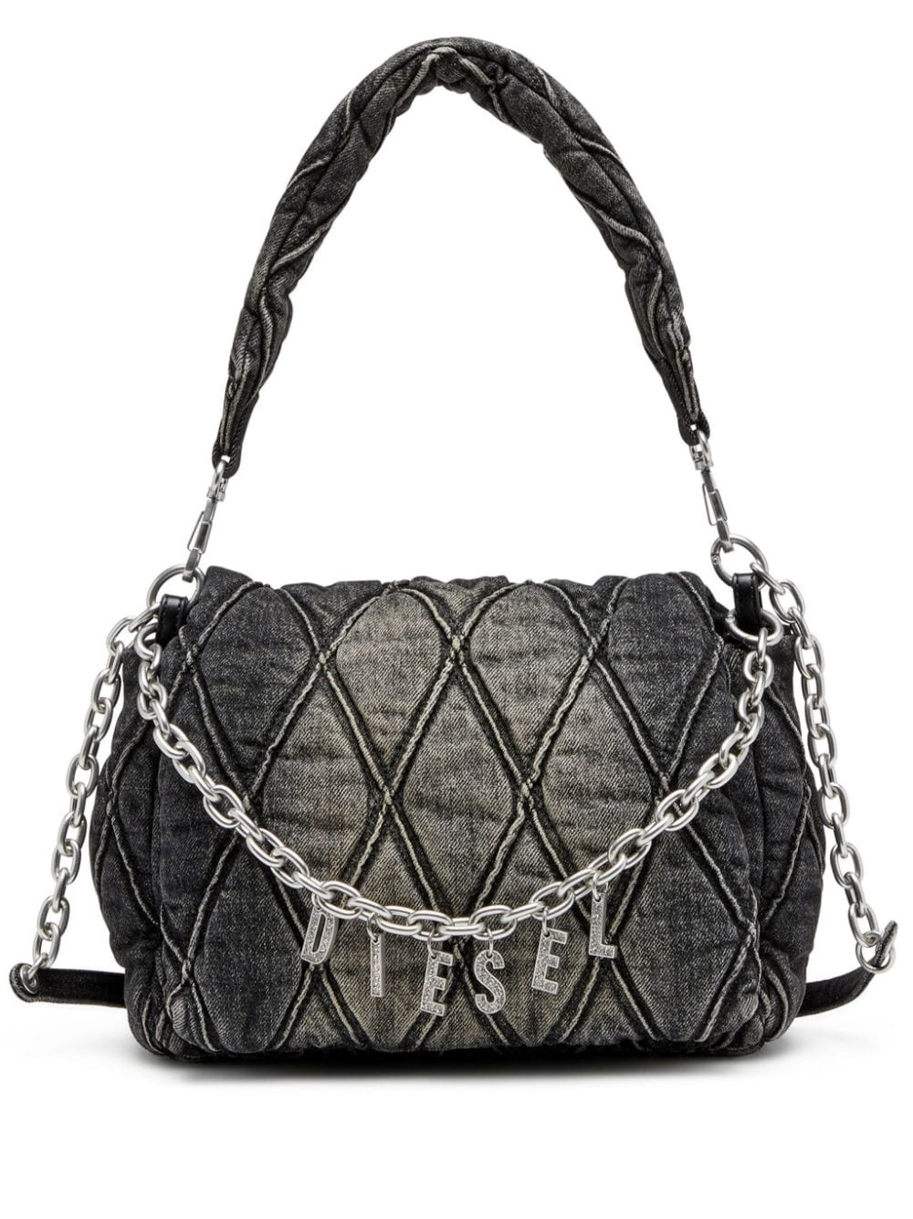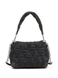 Charm-D M denim shoulder bag Highlights - Black - Cotton - Washed denim - Stonewashed - Diamond-quilted - Logo charm - Crystal embellishment - Silver-tone hardware - Foldover top with magnetic fastening - Leather and chain-link shoulder strap - Single detachable top handle - Internal logo patch - Internal zip-fastening pocket - Logo-print lining Imported Composition Outer: Cotton 100%