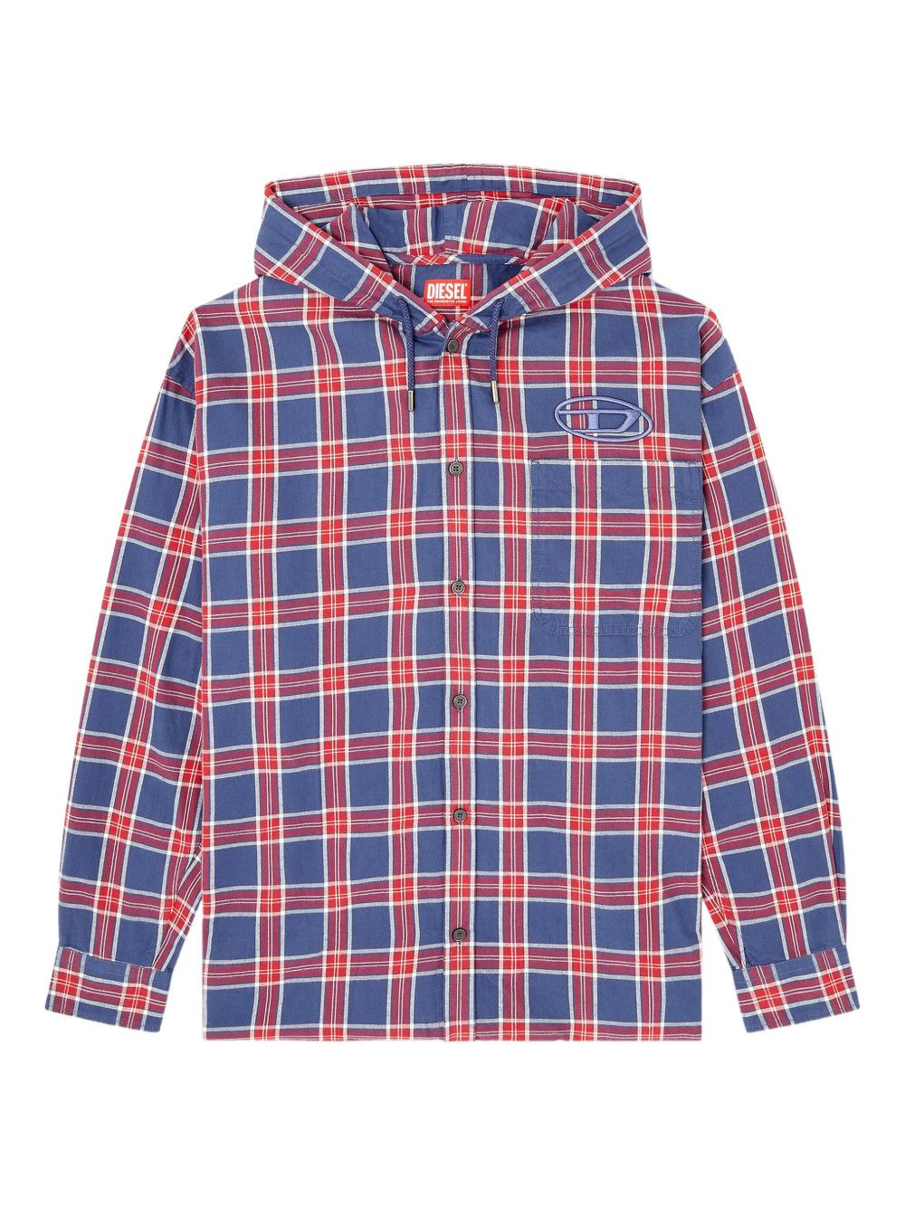 checked hooded jacket Highlights - Blue - Red checks - Hooded neckline - Button fastening - Chest pocket - Embroidered logo Imported Composition Cotton 100% Washing instructions Read Manufacturer Guidelines