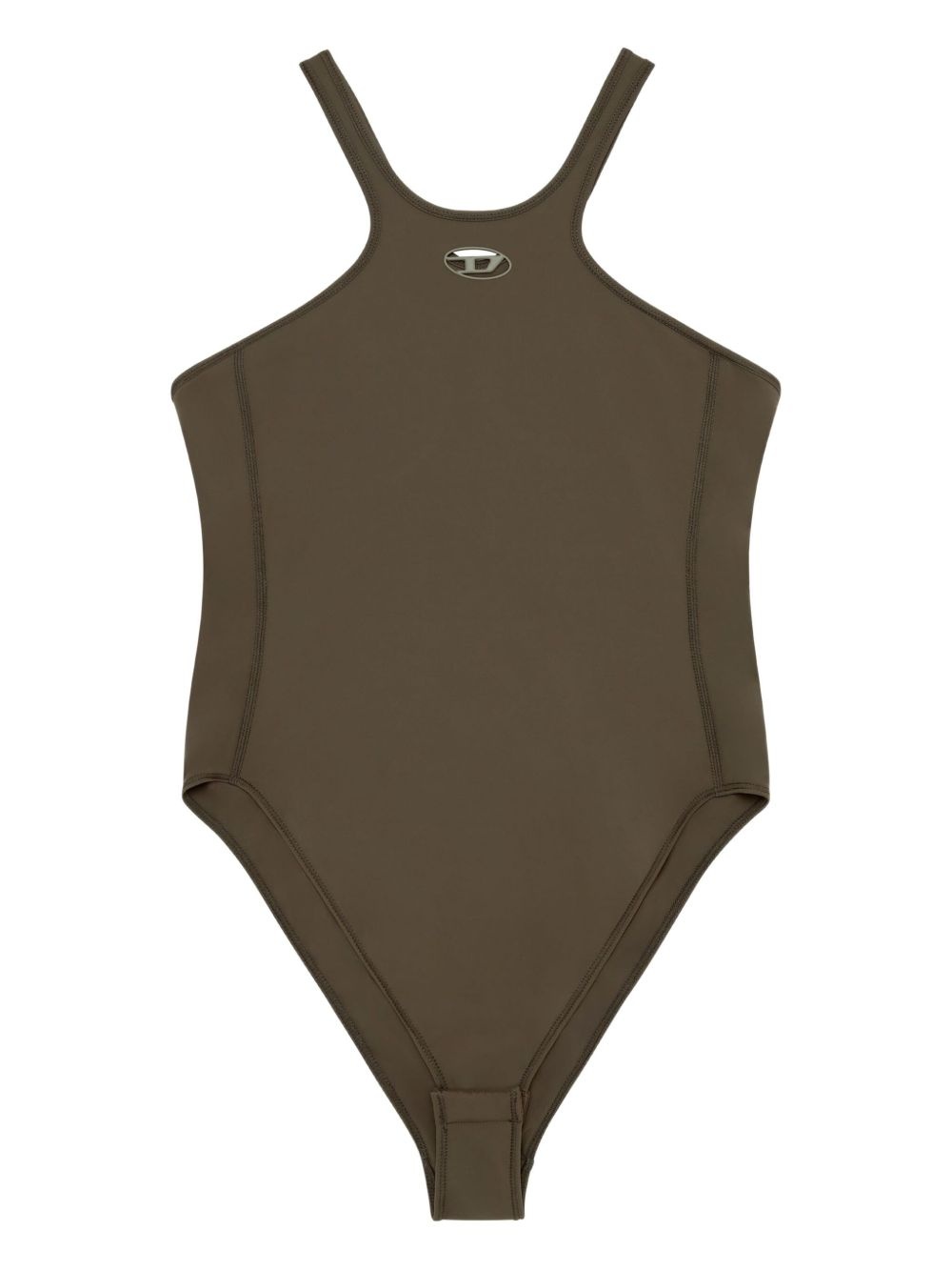 Christie-Utlt high-neck swimsuit Highlights - Olive green - High neckline - Logo detail - Slim straps - Open back - High-cut leg - Be mindful to try on swimwear over your own garments. Imported Composition Recycled Polyamide 72%, Elastane 28%