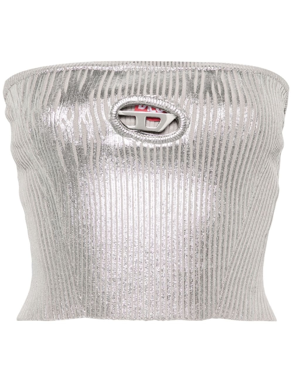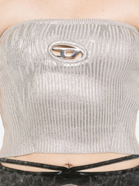 Clarksville top Highlights - Silver-tone - Cotton blend - Ribbed knit - Oval d logo plaque - Strapless - Slim cut - Cropped - Straight hem Made in Italy Composition Cotton 84%, Nylon 14%, Elastane 2% SIZE & FIT Model measurements Height 5 ft 10 in(1.77 m) Bust/Chest 33.85 in(86 cm) Hips 37 in(94 cm) Waist 26.37 in(67 cm) FittingInformation Designed for a close fit throughout Cropped in length Made from a midweight stretch fabric, this piece offers elasticity and flexibility when worn This piece fits true to size – take your usual size