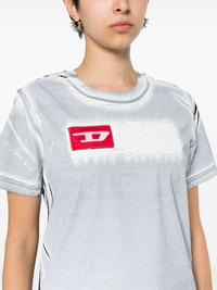 creased-paint cotton T-shirt Diesel demonstrates its propensity for casual staples with this T-shirt. It’s crafted from white and grey cotton and adorned with contrasting red logo embroidery at the chest. Highlights - White, medium grey, black - Cotton - Garment dyed - Embossed finish - Painterly print - Distressed effect - Crew neck - Short sleeves - Logo patch and embroidered logo at the chest - Straight hem - Square open back - Logo print to the rear - Contrast lining - Clg authenticity code Imported Composition Cotton 100% SIZE & FIT Model measurements Height 5 ft 11 in(1.8 m) Bust/Chest 33.07 in(84 cm) Hips 37 in(94 cm) Waist 25.59 in(65 cm) Measurement SLEEVE LENGTH 7.48 in(19 cm) LENGTH 22.83 in(58 cm) BUST 37 in(94 cm) Shoulder Width 15.35 in(39 cm) FittingInformation Designed for a slim fit that sits just away from the body offering a close yet comfortable fit Made from a midweight non-stretch fabric, this piece offers minimal elasticity when worn This piece fits true to size – take your usual size