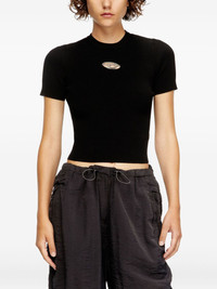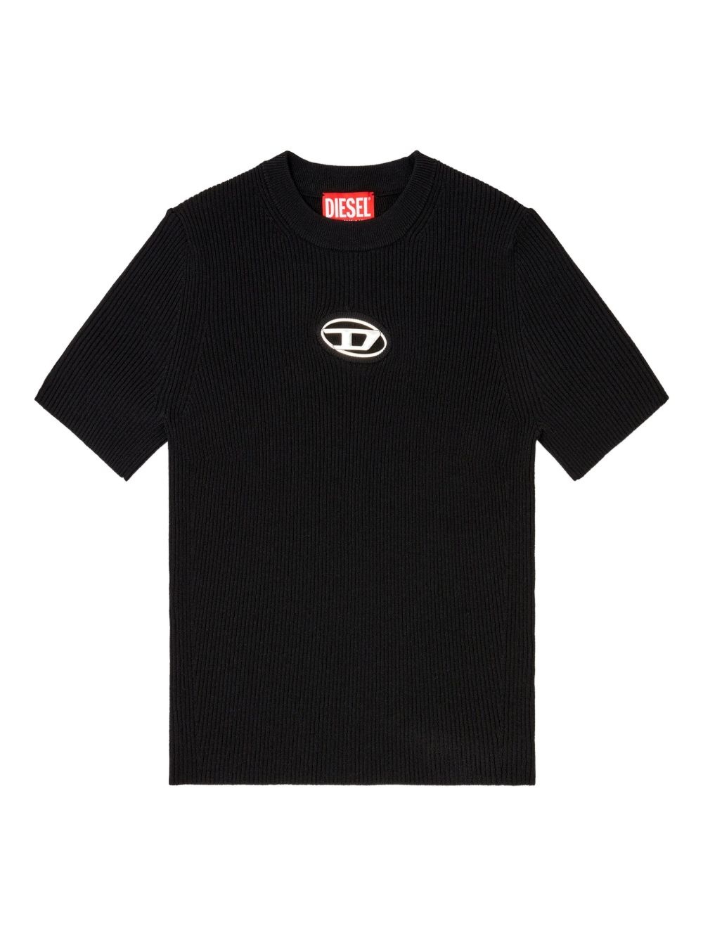 crew-neck ribbed T-shirt Highlights - Black - Ribbed fabric - Short sleeves - Metallic logo detail - Close-fitting Imported Composition Viscose 83%, Polyester 17% Washing instructions Hand Wash