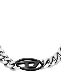 curb-chain logo necklace Highlights - Silver - Curb chain - Black logo plaque - Oval-shaped plaque - Steel - Lobster clasp Imported