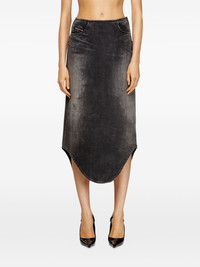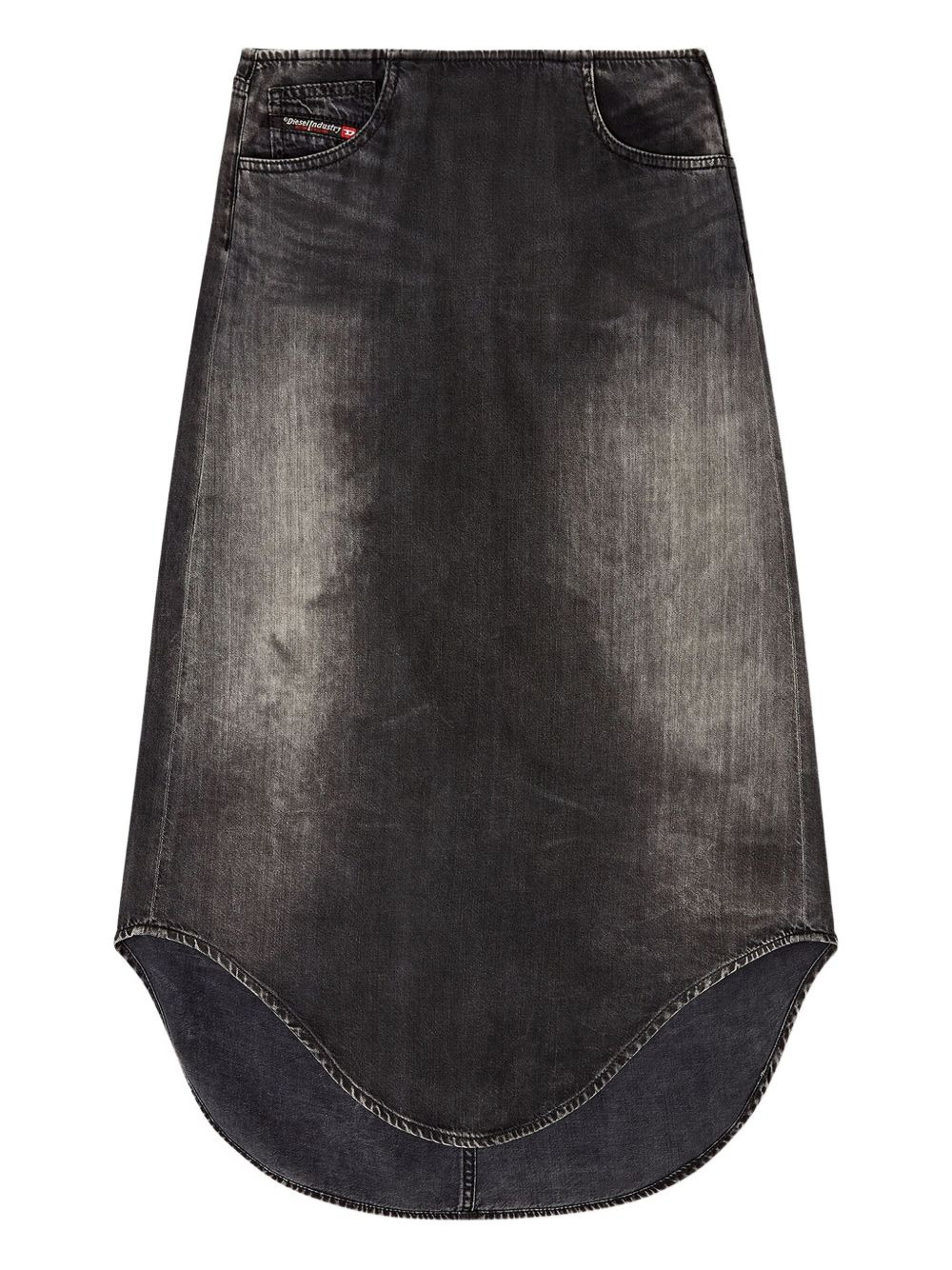 curved-hem denim skirt Highlights - Black - Curved hem - Mid-rise waist - Five-pocket styling Made in Italy Composition Cotton 50%, Lyocell 40%, Polyurethane 10% Washing instructions Read Manufacturer Guidelines