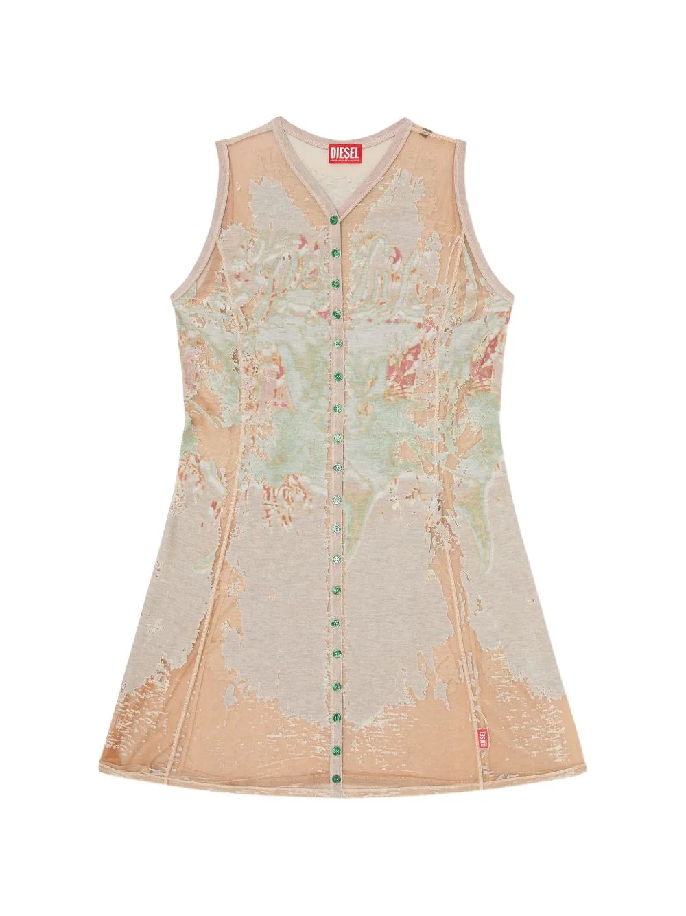 D-Alfio abstract-pattern mini dress Highlights - Beige - V-neck - Sleeveless - Button fastening Imported Composition Viscose 87%, Polyester 10%, Elastane 3% Washing instructions Hand Wash