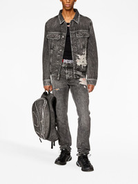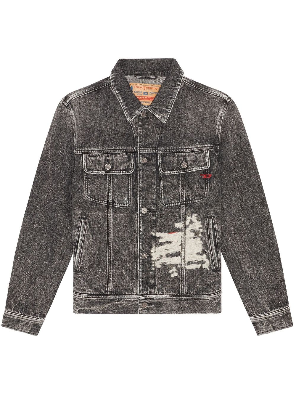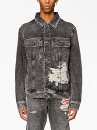 D-Barcy-S1 denim trucker jacket Highlights - Anthracite grey - Cotton-hemp blend - Denim - Distressed effect - Ripped detailing - Embroidered logo at the chest - Straight-point collar - Front button fastening - Two chest flap pockets - Two side welt pockets - Long sleeves - Buttoned cuffs - Straight hem Made in Italy Composition Cotton 80%, Hemp 20% Washing instructions Machine Wash