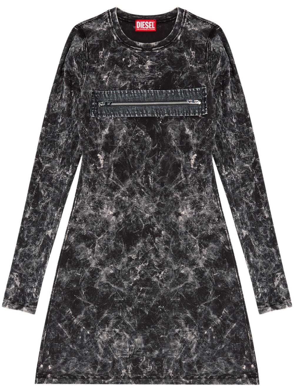 D-Erco mini dress Highlights - Black - Cotton blend - Fine ribbed - Marbled pattern - Bleached effect - Crew neck - Decorative zip detailing - Long sleeves - Unlined - Bodycon design - Straight hem - Thigh-length Imported Composition Cotton 94%, Elastane 6% Washing instructions Hand Wash