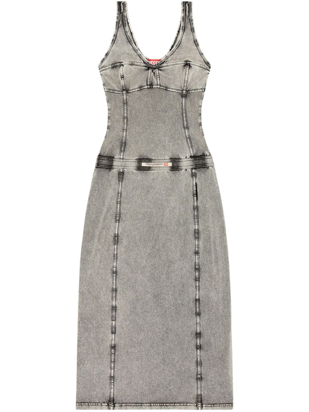 D-Inny denim dress Highlights - Grey - Logo tag - Sleeveless - Mid-length Imported Composition Cotton 95%, Elastane 5%