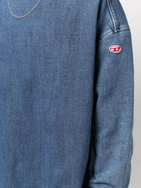 D-Krib washed-denim sweatshirt Highlights - Denim blue - Stretch cotton - Track denim joggjeans® - Logo patch at the sleeve - Ribbed detailing - Crew neck - Long sleeves - Straight hem Imported Composition Cotton 98%, Spandex/Elastane 2% SIZE & FIT Model measurements Height 6 ft 1 in(1.85 m) Bust/Chest 35.82 in(91 cm) Hips 37.79 in(96 cm) Waist 29.13 in(74 cm) FittingInformation This piece fits true to size. We recommend you get your regular size Cut for a loose fit Made with a mid-weight stretch fabric Washing instructions Machine Wash