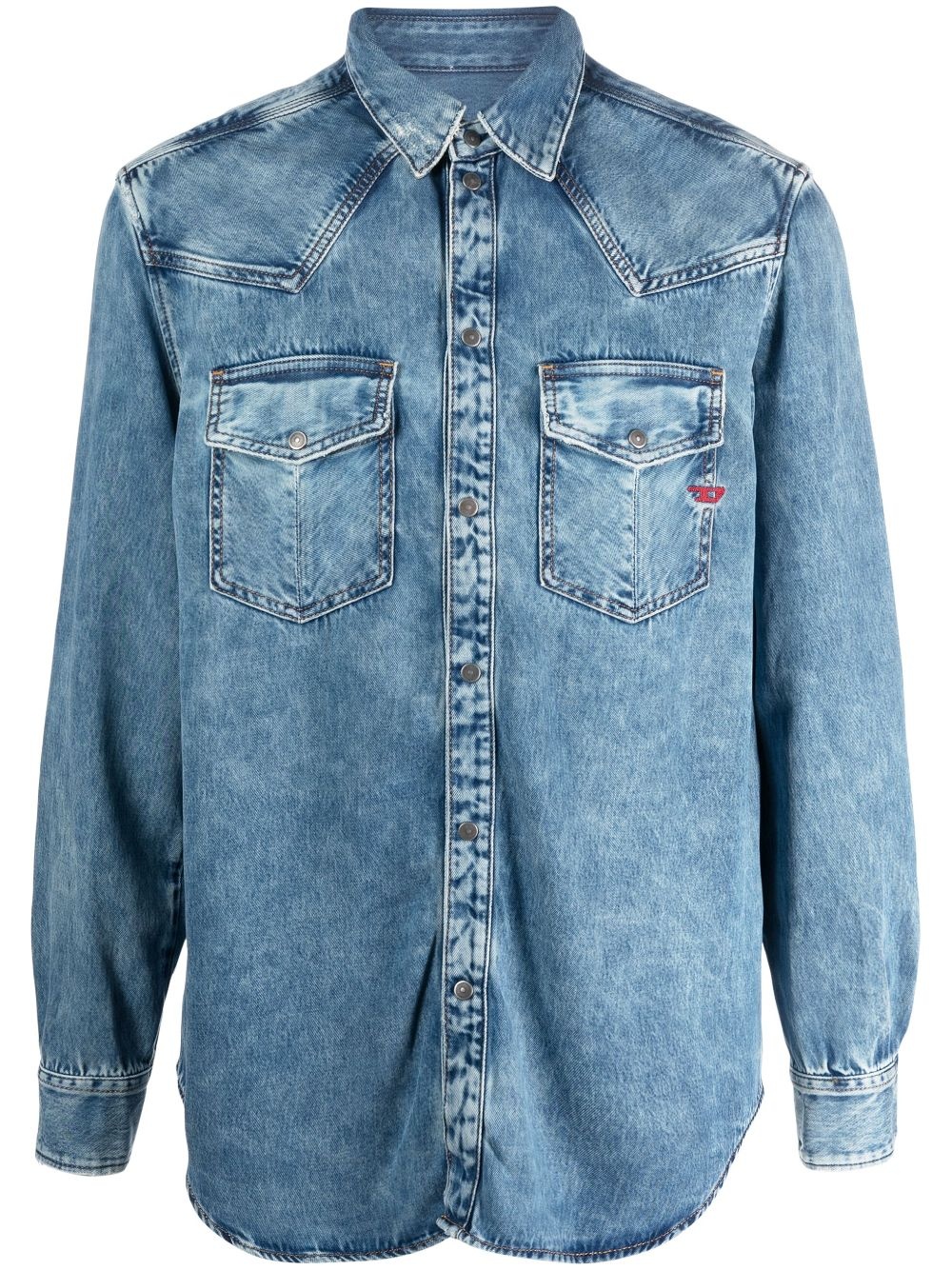 D-Ocean washed-denim shirt Highlights - Light blue - Lyocell - Washed denim - Two front flap pockets - Classic collar - Front button fastening - Long sleeves - Buttoned-cuff sleeves - Curved hem Imported Composition Lyocell 100% SIZE & FIT Model measurements Height 6 ft 2 in(1.87 m) Bust/Chest 36.41 in(92.5 cm) Hips 37 in(94 cm) Waist 29.52 in(75 cm)