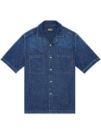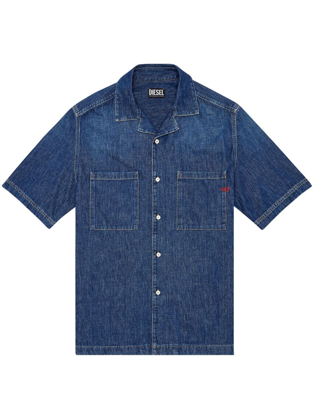 D-Paroshort short-sleeved denim shirt Highlights - Indigo blue - Cotton - Washed denim - Embroidered logo to the front - Notched lapels - Front button fastening - Two chest patch pockets - Short sleeves - Straight hem Made in Italy Composition Cotton 100% Washing instructions Read Manufacturer Guidelines