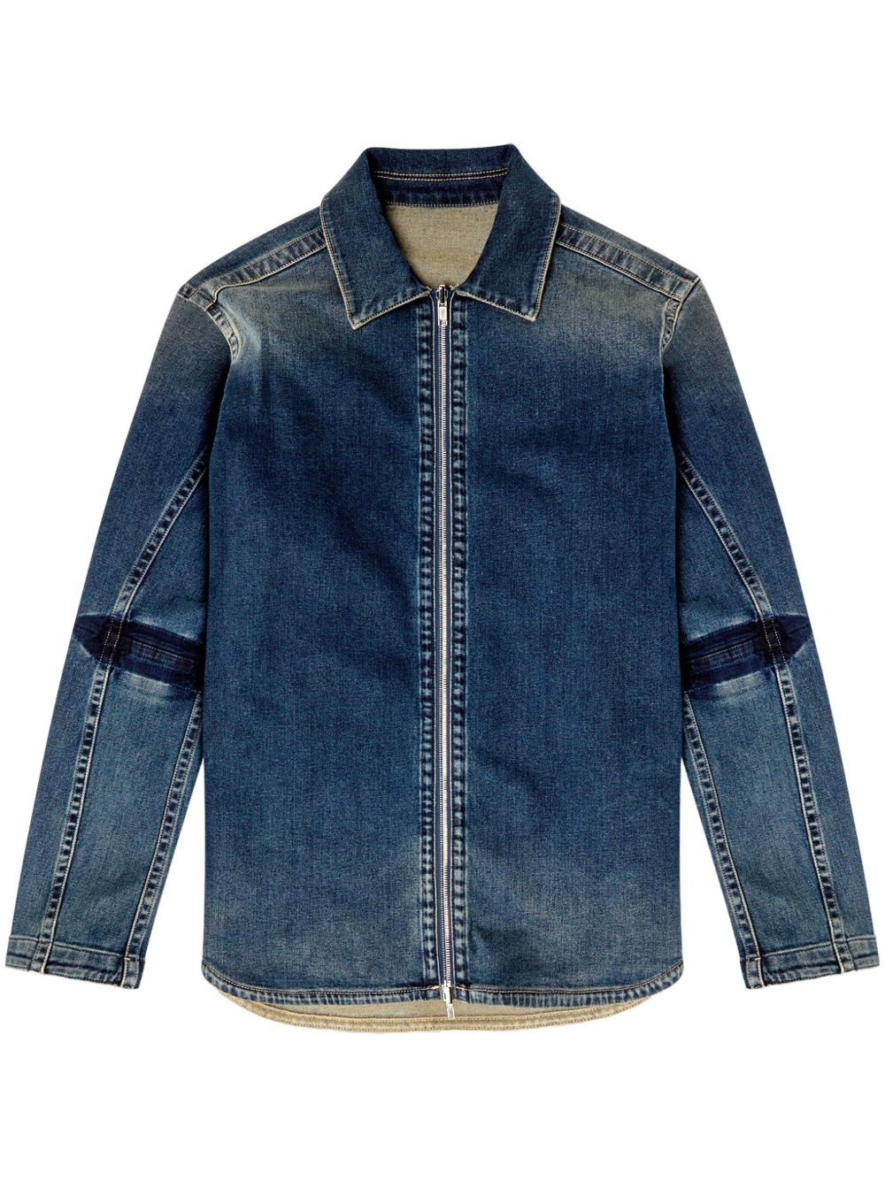 D-Simply-Re jacket Highlights - Indigo blue - Cotton blend - Washed denim - Front two-way zip fastening - Spread collar - Long sleeves - Unlined - Rear curved hem Made in Italy Composition Cotton 63%, Lyocell 34%, Elastane 2%, Other fibres 1%