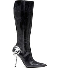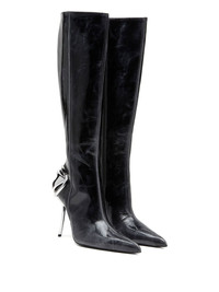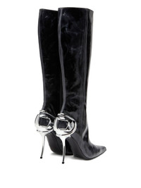 105mm D-Ten & Half knee-high boots Highlights - Black - Oval d logo plaque - Pointed toe - High stiletto heel Made in Italy Composition Outer: Bovine Leather (top grain) 95%, Thermoplastic 5% Lining: Calf Leather 100% Sole: Calf Leather 100% SIZE & FIT Measurement HEEL 4.13 in(10.5 cm)
