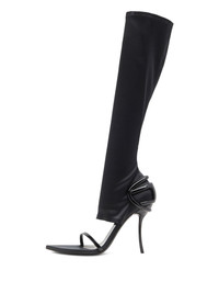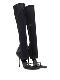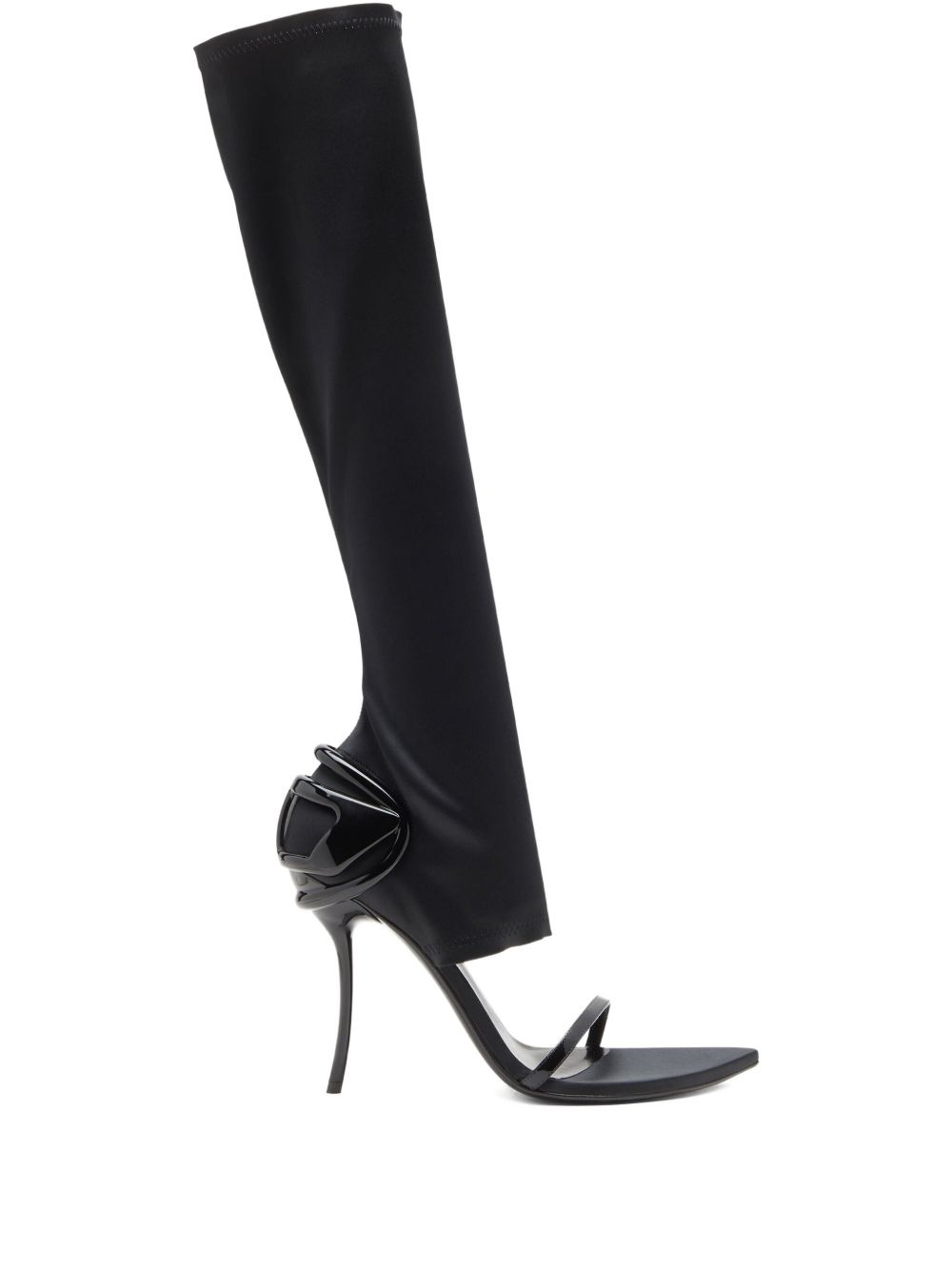 D-Ten&Half knee-high boots Highlights - Black - Pointed toe - Knee-high - High sculpted heel Made in Italy Composition Outer: Polyester 87%, Elastane 6%, Thermoplastic Polyurethane (TPU) 4%, Calf Leather 3% Lining: Calf Leather 100% Sole: Leather 100% SIZE & FIT Measurement HEEL 4.13 in(10.5 cm)