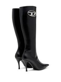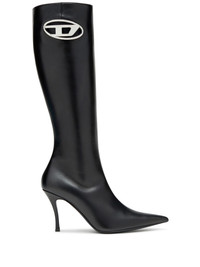 D-Venus logo-plaque leather boots Crafted from buttery-soft leather, Diesel's D-Venus BHT boots are sculpted to a pointed-toe silhouette with a high stiletto heel. They're finished with the signature Oval D logo. Highlights - Black - Calf leather - Oval d plaque - Pointed toe - High stiletto heel Made in Italy Composition Outer: Calf Leather 100% Lining: Calf Leather 100% Sole: Calf Leather 100%