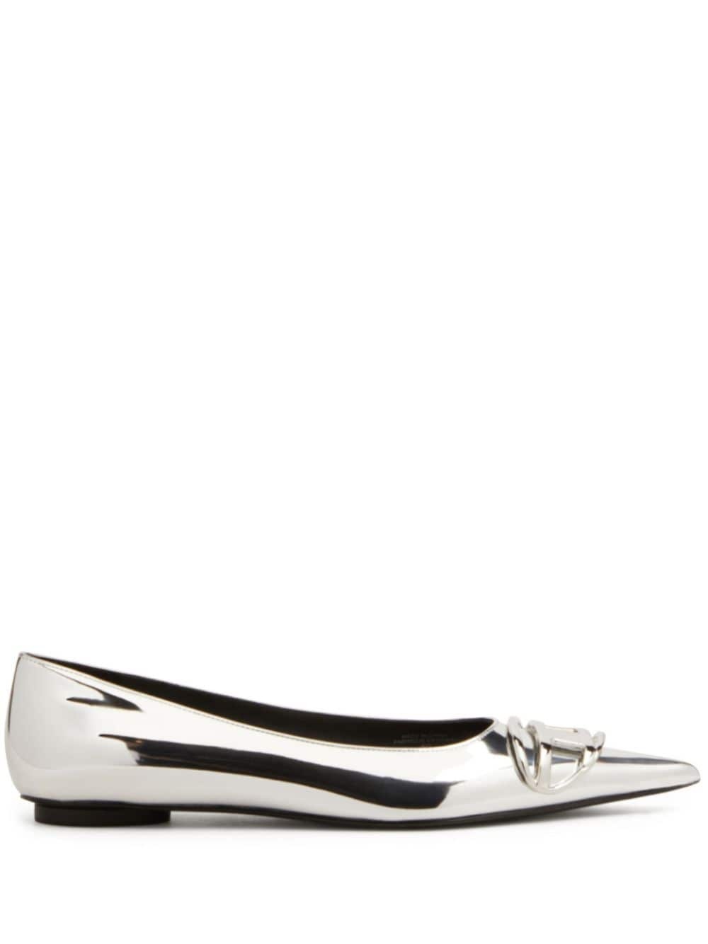 D-venus leather ballerina shoes Highlights - Silver-tone - Calf leather - Metallic finish - Logo plaque - Pointed toe - Branded leather insole - Stacked heel - Flat leather sole - Slip-on style Made in Italy Composition Other fibres 100%