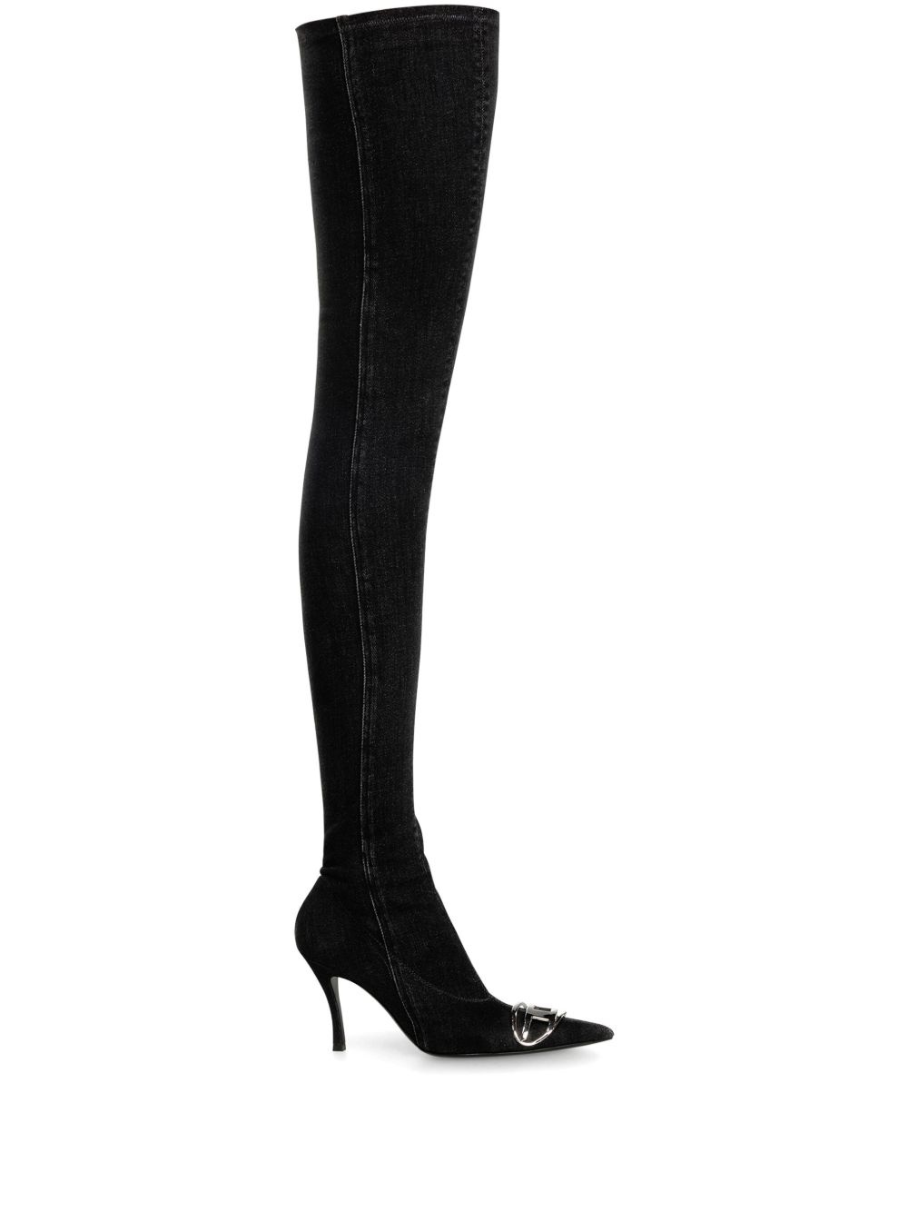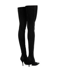 D-Venus TBT D boots Highlights - Black - Calf leather - Denim - Stretch-cotton - Side zip fastening - 90mm high heel - Thigh-length - Oval d logo plaque - Pointed toe Made in Italy Composition Leather 100%