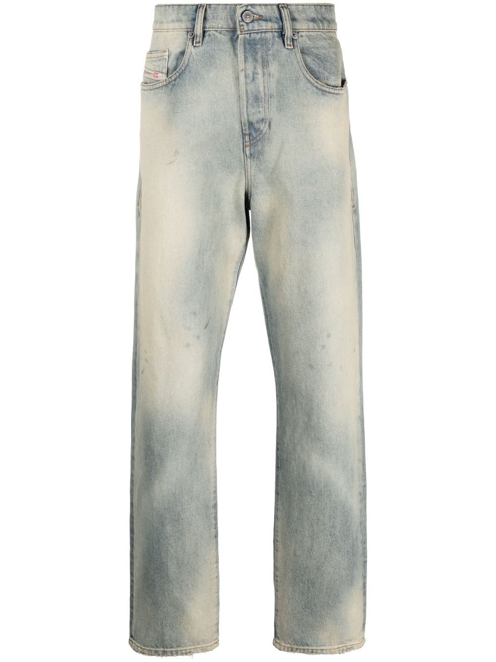 D-Viker straight-leg jeans blue cotton denim embroidered logo to the rear classic five pockets straight leg distressed effect belt loops Imported Composition Cotton 100% SIZE & FIT Model measurements Height 6 ft 2 in(1.87 m) Bust/Chest 35.82 in(91 cm) Hips 35.43 in(90 cm) Waist 27.95 in(71 cm) FittingInformation This piece fits true to size. We recommend you get your regular size Regular fit Made with a mid-weight non-stretch fabric Washing instructions Machine Wash