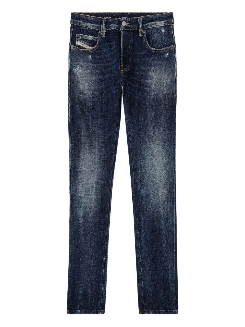 D-Vyl 0adbn button slim jeans Highlights - Dark blue - Abrasions - Button fly - Whiskers - Worn effect - Cotton Made in Italy Composition Cotton 99%, Elastane 1% Washing instructions Read Manufacturer Guidelines