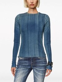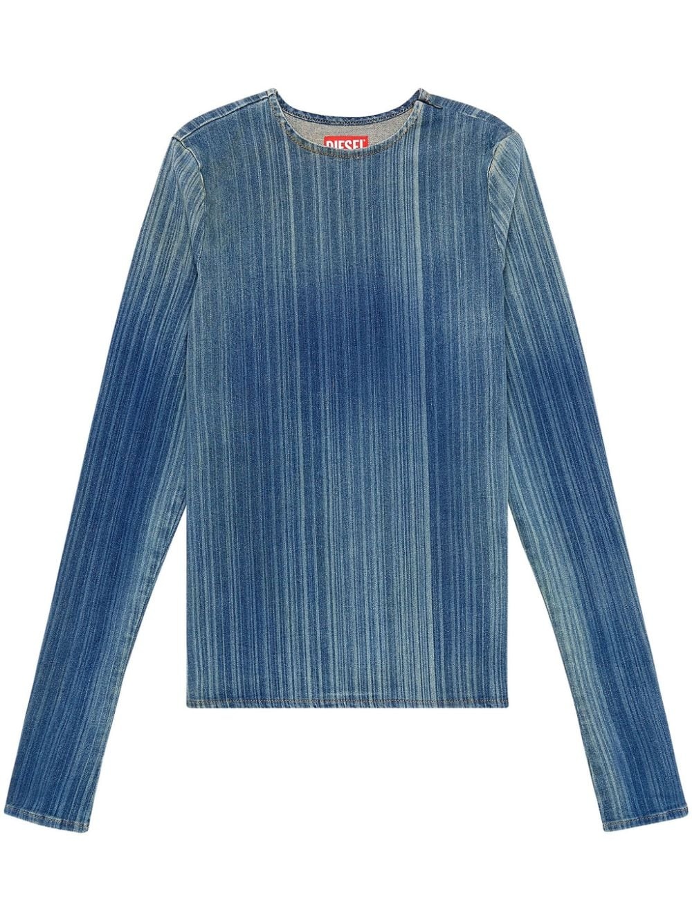 De-Bob-Fsd1 long-sleeved T-shirt Highlights - Indigo blue - Stretch-cotton - Washed denim - Vertical stripe pattern - Crew neck - Long sleeves - Straight hem Made In Italy Composition Cotton 92%, Thermoplastic Elastomers (TPE) 6%, Elastane 2%