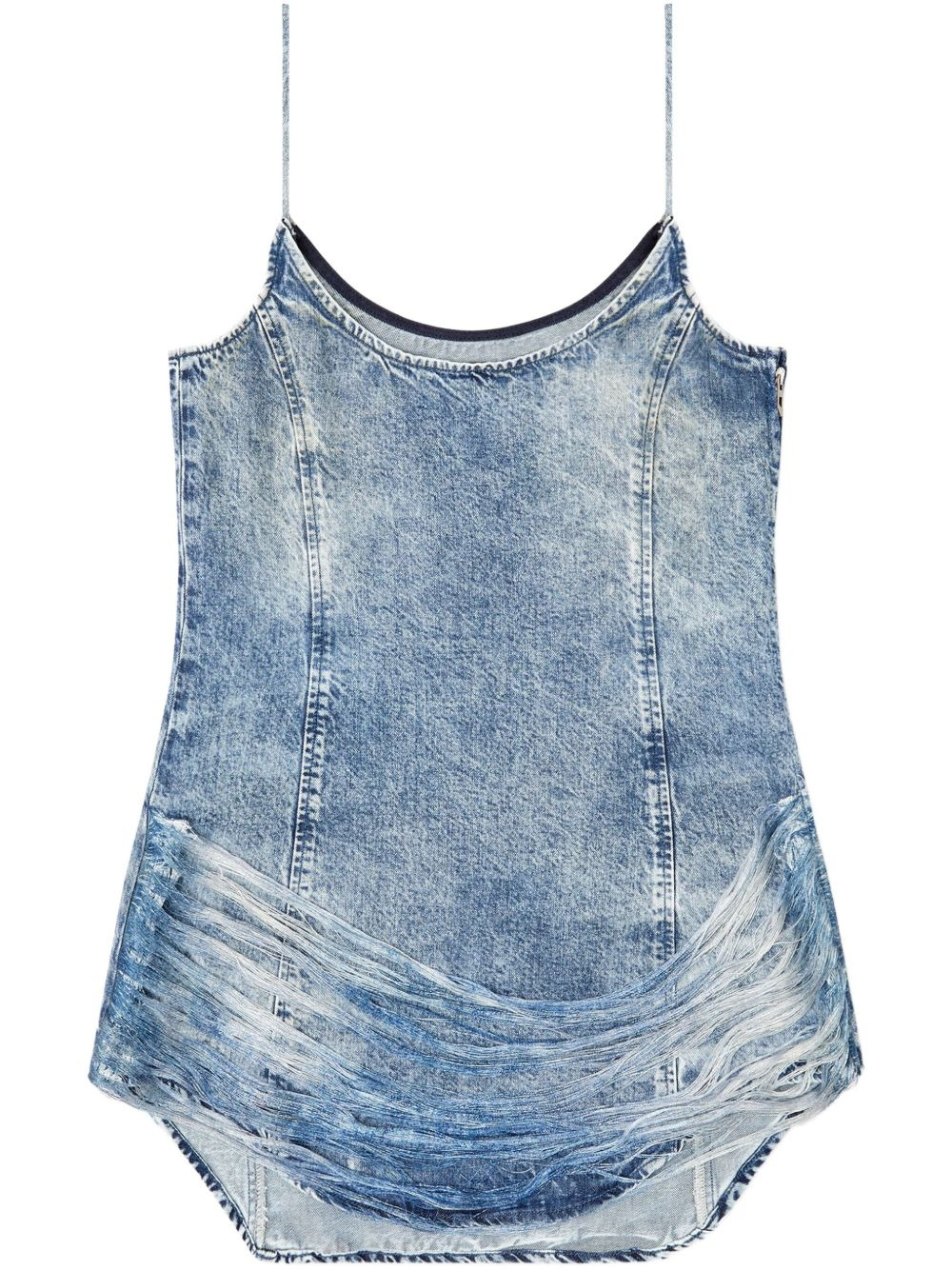 De-Dra mini dress Highlights - Cerulean blue - Concealed side hook and zip fastening - Spaghetti straps - Sleeveless - Frayed detailing Imported Composition Lyocell 100% SIZE & FIT FittingInformation Designed for a close fit throughout Slightly short in length; consider your own measurements Made from a midweight non-stretch fabric