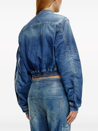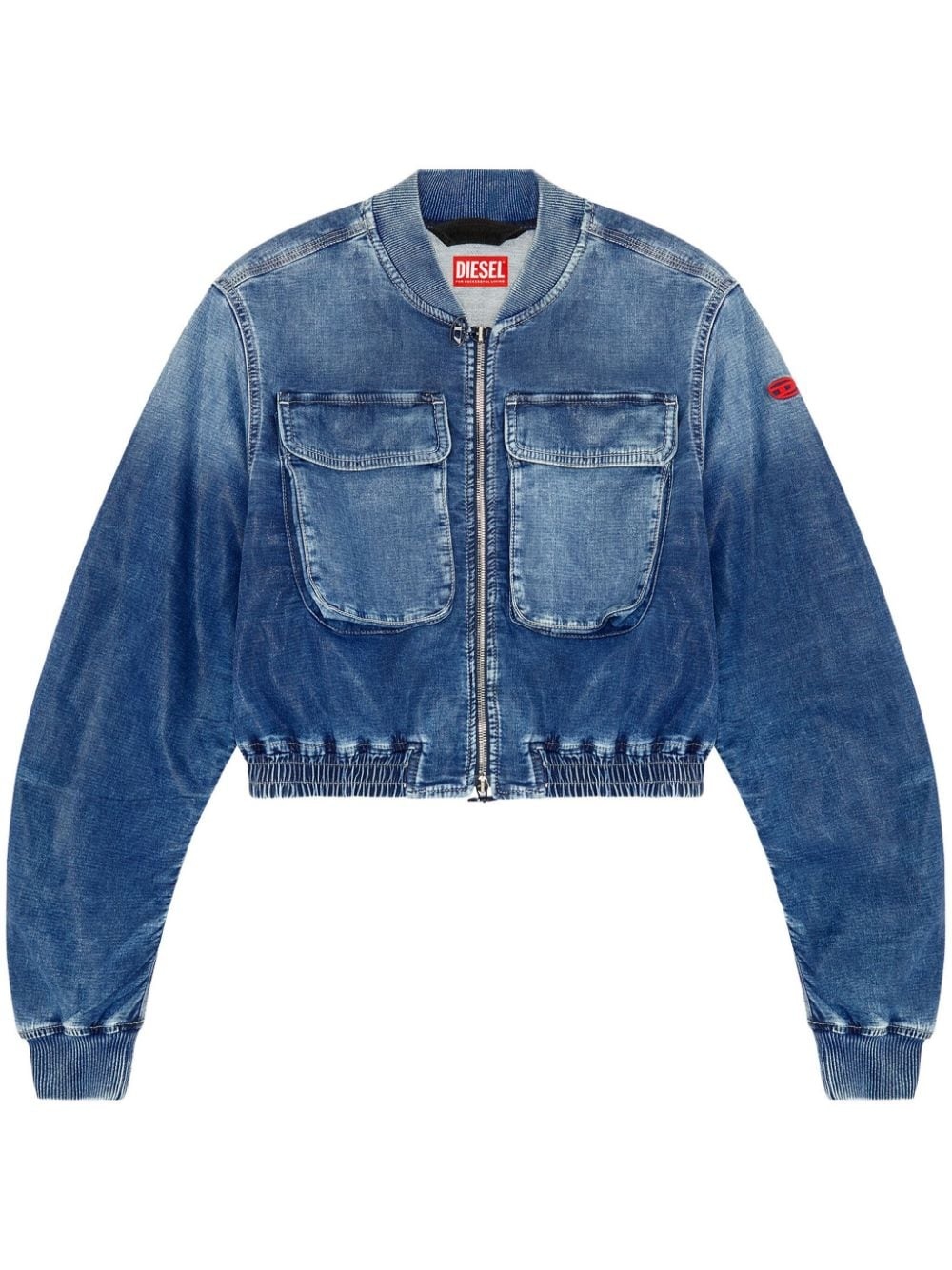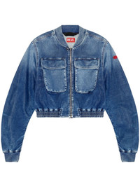 De-Khlo-S Track denim bomber jacket Highlights - Indigo blue - Cotton blend - Washed denim - Applique logo - Round neck - Front zip fastening - Two chest flap pockets - Long sleeves - Cropped - Elasticated hem Made in Italy Composition Cotton 90%, Polyester 8%, Elastane 2%