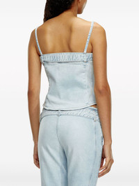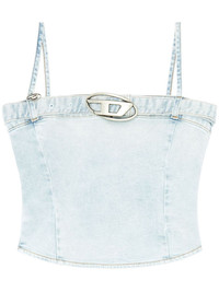 De-Lucy-S denim tank top Highlights - Light blue - Cotton - Denim - Logo plaque - Logo-buckle detail - Detachable belt - Square neck - Spaghetti straps - Side zip fastening - Curved hem Made in United Kingdom Composition Cotton 100% SIZE & FIT Model measurements Height 5 ft 10 in(1.78 m) Bust/Chest 29.92 in(76 cm) Hips 34.64 in(88 cm) Waist 23.62 in(60 cm) FittingInformation Designed for a slim fit that sits just away from the body offering a close yet comfortable fit The belt offers adjustability for fitted preferences Sturdy and hard-wearing, this denim piece offers no stretch This piece fits true to size – take your usual size Washing instructions Machine Wash