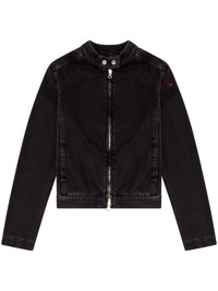 DE-MORNIN denim jacket Highlights - Black - Cotton - Denim - Dark wash - Seam detailing - Embroidered logo at the sleeve - Band collar - Two-way zip fastening - Two side inset pockets - Long sleeves - Straight hem Made in Italy Composition Cotton 62%, Recycled Cotton 38% Washing instructions Read Manufacturer Guidelines