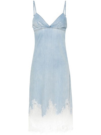 De-Rude-S slip dress Highlights - Light blue - Cotton blend - Denim - Triangle cup - Adjustable spaghetti straps - Side zip fastening - Slip silhouette - Lace panel hem - Mid-calf length Made in United Kingdom Composition Cotton 50%, Lyocell 40%, Modal 10% SIZE & FIT Model measurements Height 5 ft 11 in(1.8 m) Bust/Chest 33.07 in(84 cm) Hips 37.4 in(95 cm) Waist 25.19 in(64 cm) FittingInformation Designed for a slim fit that sits just away from the body offering a close yet comfortable fit The adjustable shoulder straps allow for a preferred fit when worn Made from a midweight non-stretch fabric This piece fits true to size – take your usual size Washing instructions Machine Wash