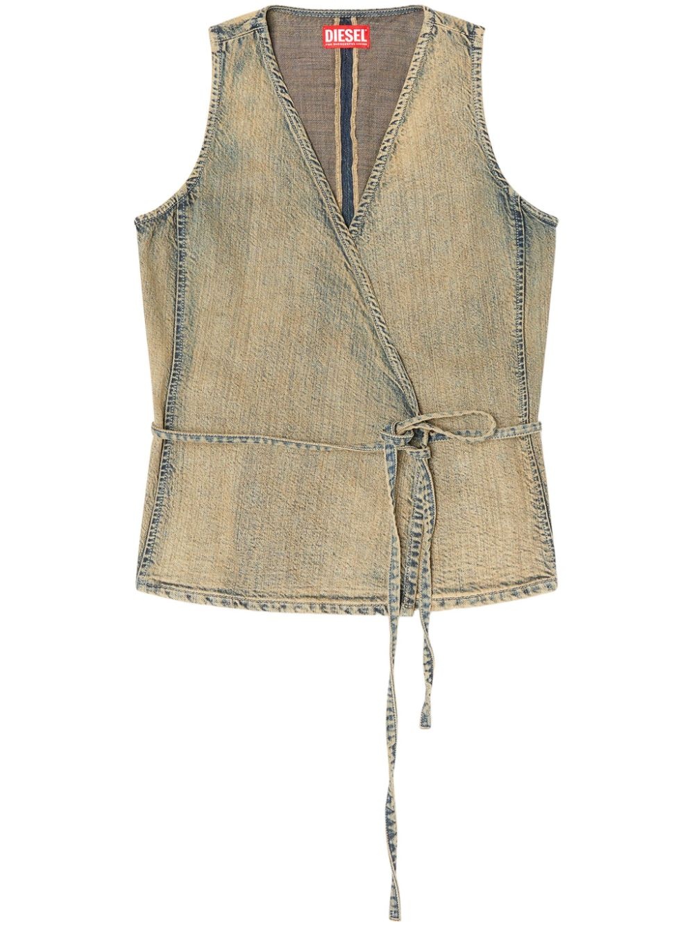 De-Vern top Highlights - Ecru/indigo blue - Cotton - Denim - Faded effect - Wrap design - Tie-fastening straps - V-neck - Sleeveless - Logo plaque - Curved hem Made in Italy Composition Cotton 100%