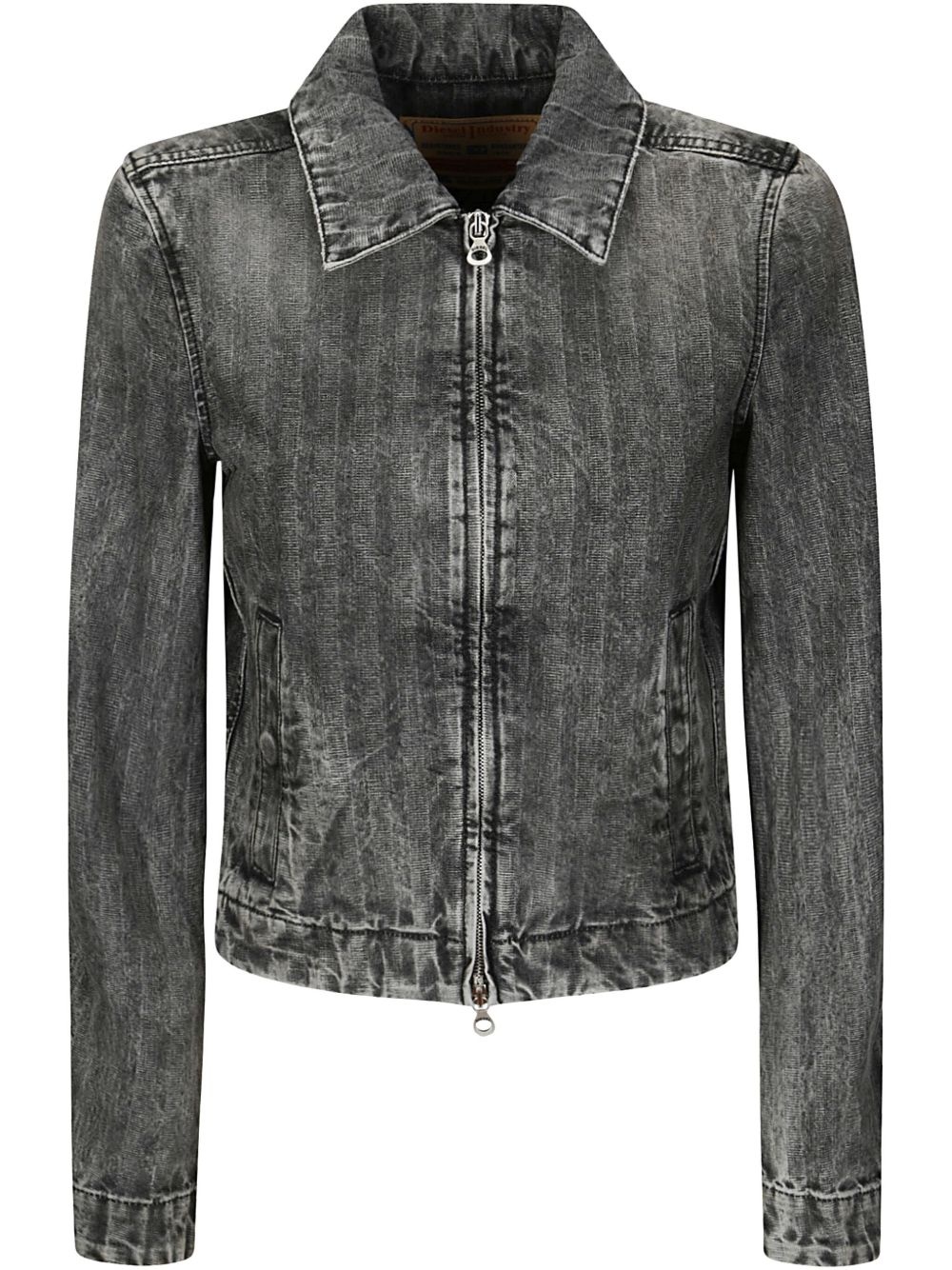 distressed denim jacket Highlights - Light grey - Front zip fastening - Classic collar - Two side slit pockets - Cropped Imported Composition Cotton 100%