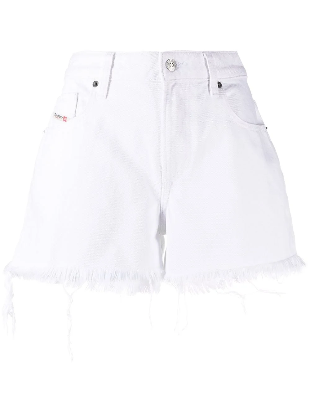 distressed denim shorts white cotton frayed edge belt loops front button and zip fastening classic five pockets Imported Composition Cotton 100% Washing instructions Machine Wash