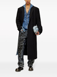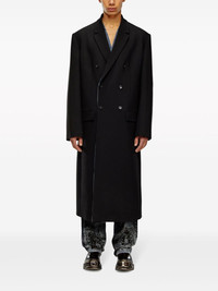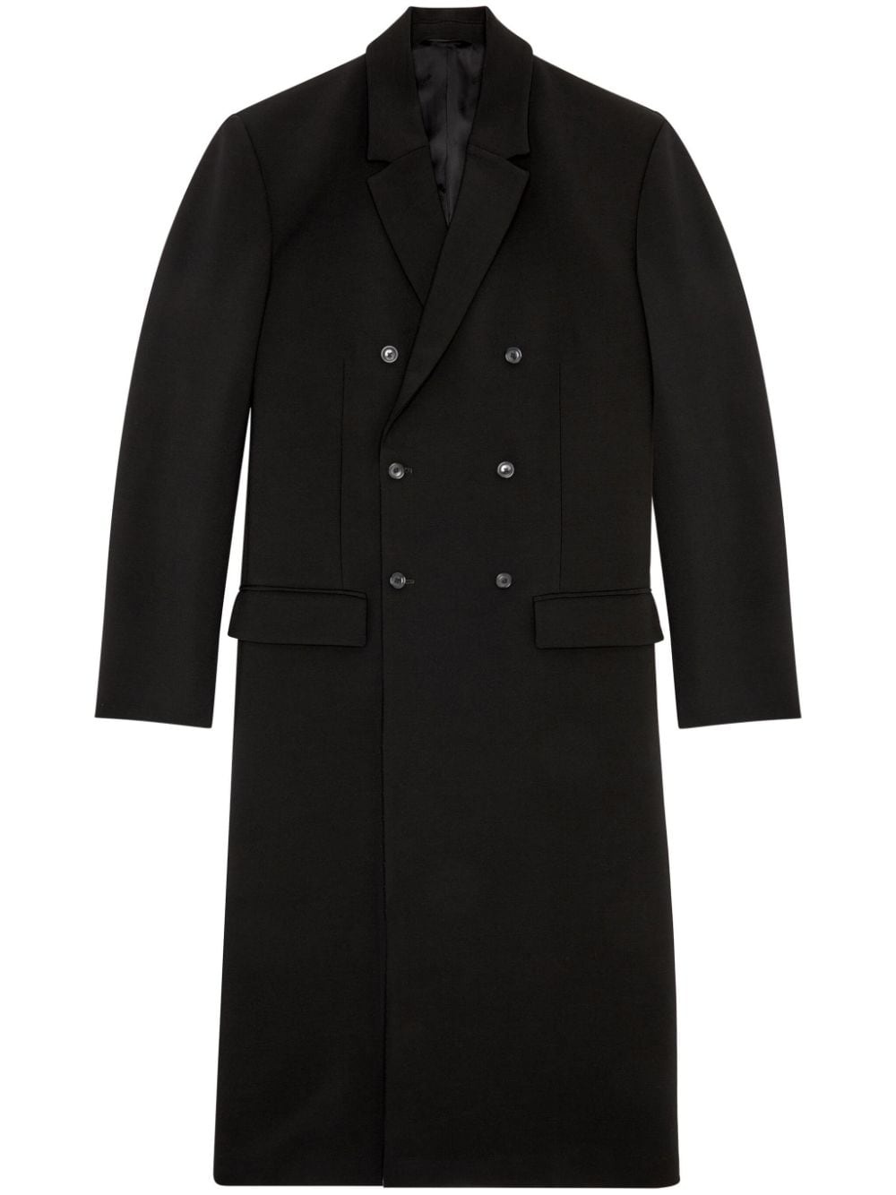 double-breasted tailored coat Highlights - Black - Knitted construction - Notched collar - Notched lapels - Long sleeves - Double-breasted button fastening - Two side flap pockets - Straight hem Made in Italy Composition Polyester 52%, Virgin Wool 43%, Elastane 5%