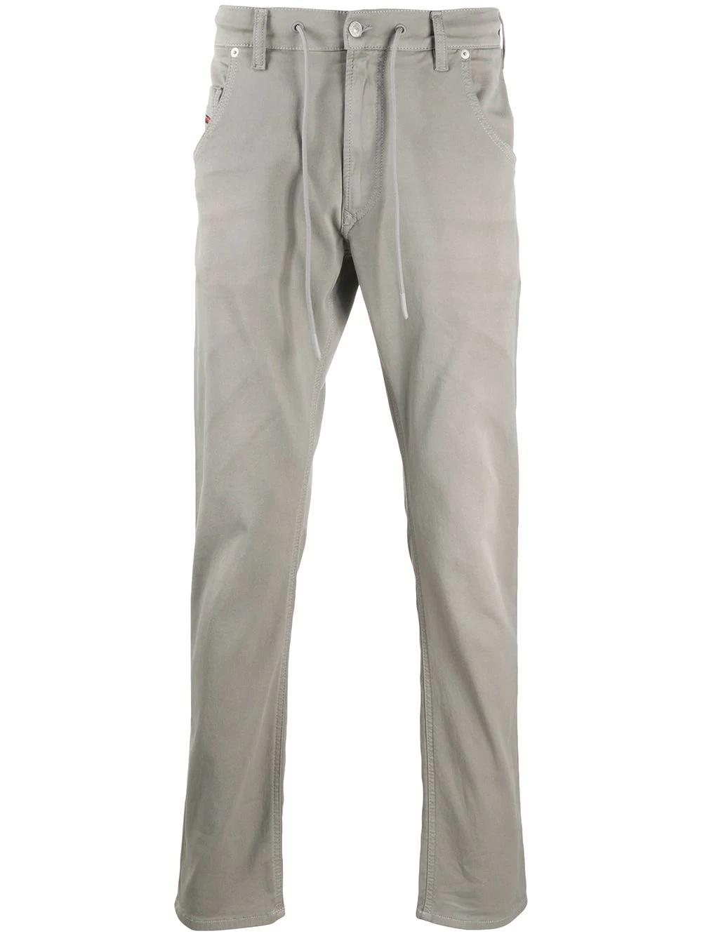 2030 D-Krooley 0670M jeans Highlights - Grey stretch-cotton drawstring krooley jogg jeans from diesel featuring drawstring fastening waist, front button and zip fastening, classic five pockets, logo-embroidered edge and tapered fit. . Imported Composition Cotton 90%, Polyester 8%, Spandex/Elastane 2% SIZE & FIT Model measurements Height 6 ft 1 in(1.85 m) Bust/Chest 35.82 in(91 cm) Hips 37.79 in(96 cm) Waist 29.13 in(74 cm) FittingInformation This piece fits true to size. We recommend you get your regular size Cut for a slim fit Made with a mid-weight stretch fabric Washing instructions Machine Wash