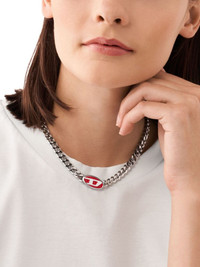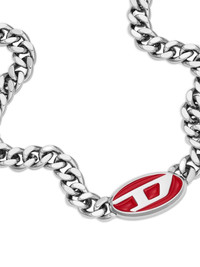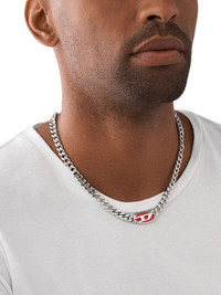 Dx1446 logo-plaque necklace Highlights - Silver-tone/red - Steel - Polished finish - Logo plaque - Engraved logo - Lobster claw fastening Imported