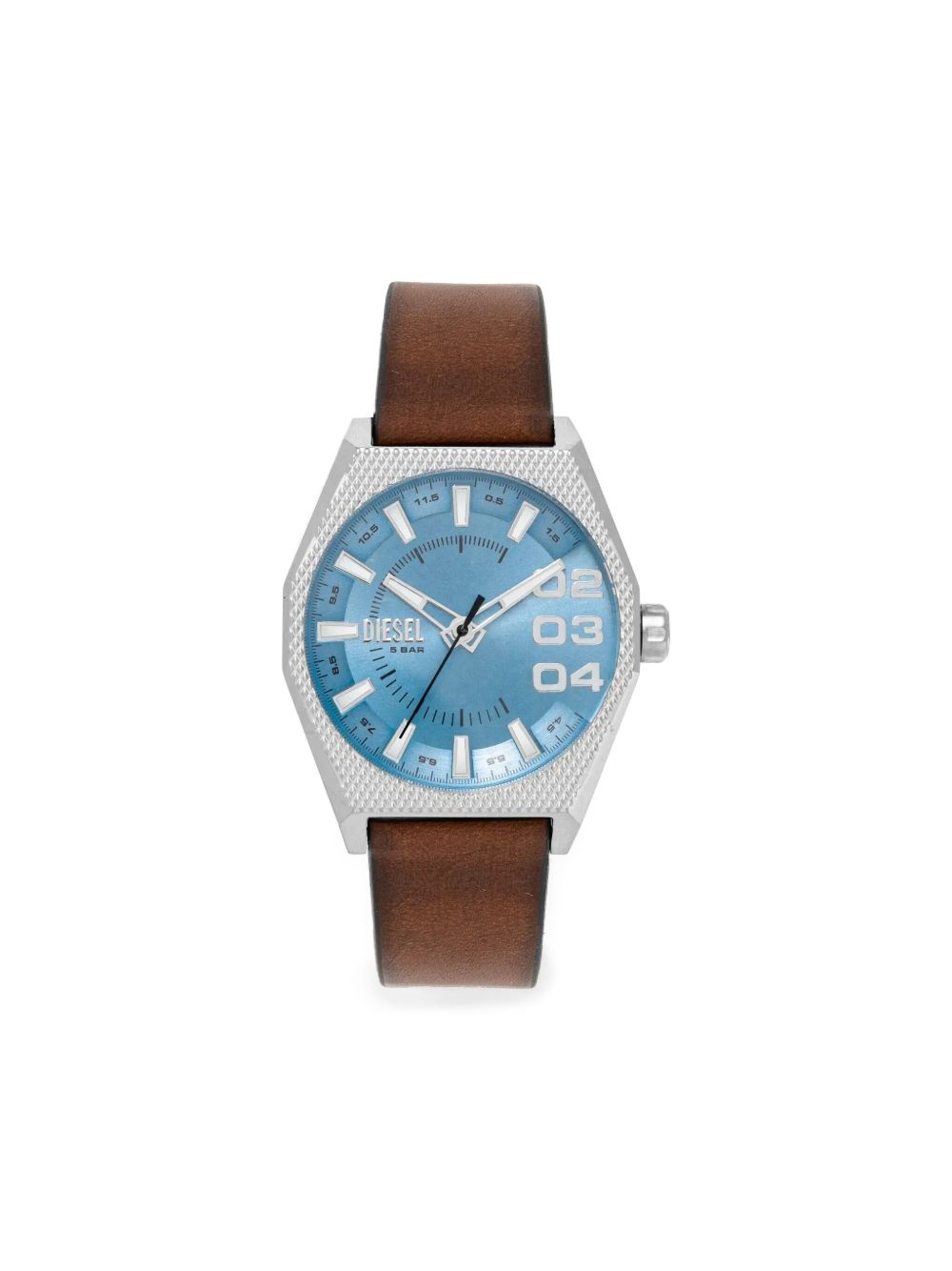 Dz2174 43mm Highlights - 43mm - Round face - Sky blue - Arabic dial - Index dial - Baton dial - Sword hands - Sweeping second hand - Stainless steel case - Screw-down crown - Quartz movement - Leather strap - Buckle fastening - Water resistance up to 50m/5 atm - This item comes with a standard one-year warranty from the boutique. Imported Composition Calf Leather 100%, stainless steel 100% SIZE & FIT Measurement DIAMETER 1.69 in(4.3 cm)