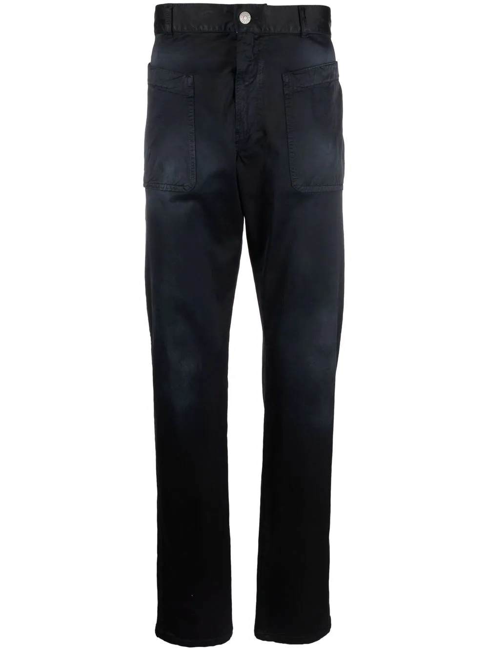 embroidered-logo slim-cut trousers jet-black cotton-blend embroidered logo front button fastening two diagonal pockets to the sides two rear patch pockets Made in Italy Composition Cotton 53%, Rayon 43%, Spandex/Elastane 4% SIZE & FIT Model measurements Height 6 ft 1 in(1.85 m) Bust/Chest 37.79 in(96 cm) Hips 37.4 in(95 cm) Waist 30.7 in(78 cm) FittingInformation This piece fits true to size. We recommend you get your regular size Cut for a slim fit Made with a mid-weight stretch fabric Washing instructions Machine Wash