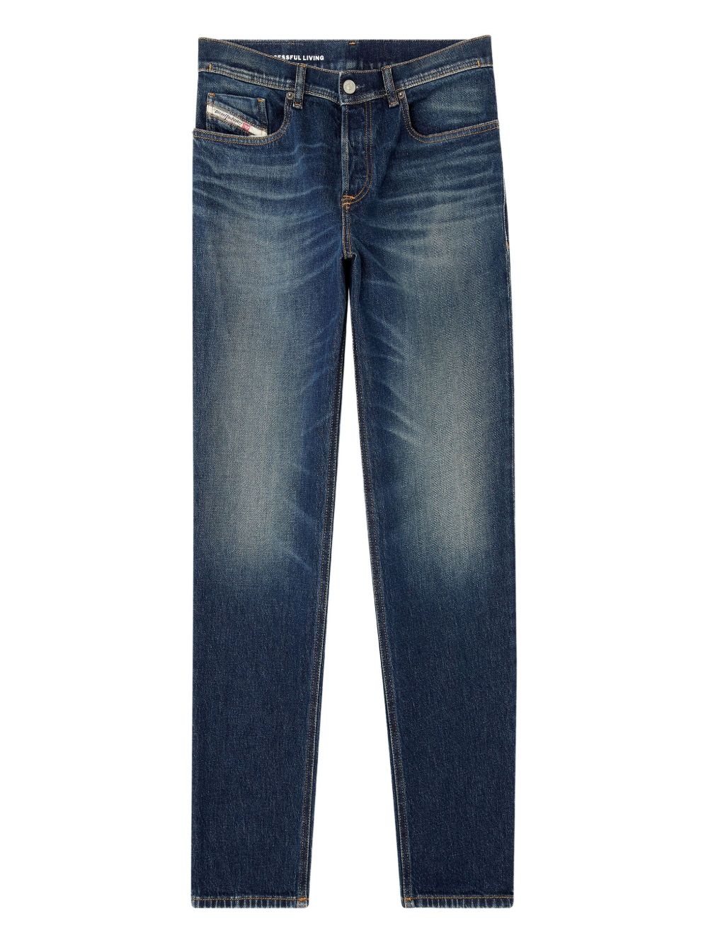 faded jeans Highlights - Dark blue - Faded finish - Five-pocket design - Belt loops - Zip fly Made in Italy Composition Cotton 99%, Elastane 1% Washing instructions Read Manufacturer Guidelines