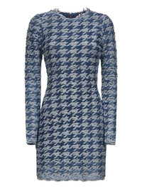 frayed-houndstooth mini dress Highlights - Light blue - Houndstooth pattern - Frayed edges - Long sleeves - Crew neck - Zip closure Made in Italy Composition Cotton 100% Washing instructions Read Manufacturer Guidelines