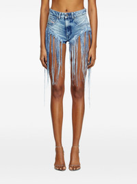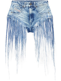 fringe-detailing shorts Highlights - Powder blue - Front button fastening - Classic five pockets - Logo patch to the rear - Belt loops Imported Composition Cotton 100%, Polyester 100% Washing instructions Hand Wash