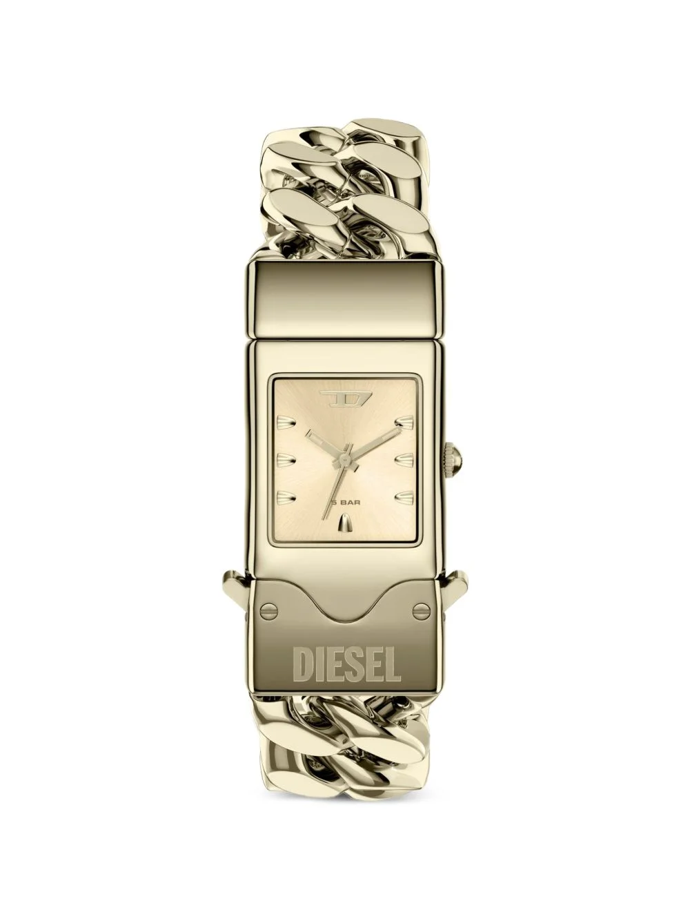 Gold Sunray 22mm watch Highlights - Gold tone - Gold sunray dial - Rectangular face - Three-hand movement - Chain bracelet - Standard crown - Metal build Imported Composition Steel 100%